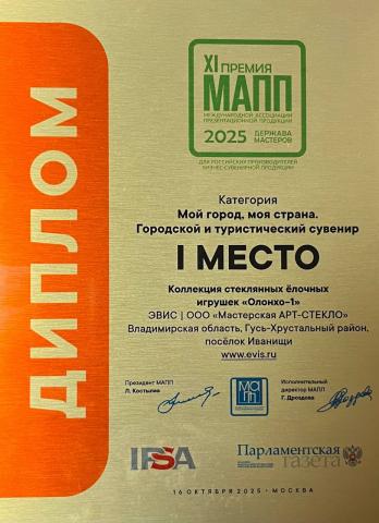 Наше предприятие — лидер XI Премии МАПП «Держава Мастеров – 2025» в номинации «Мой город, моя страна. Городской и туристический сувенир»