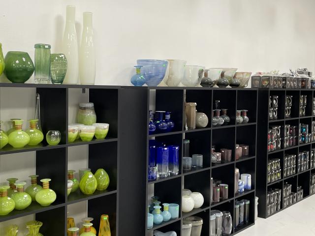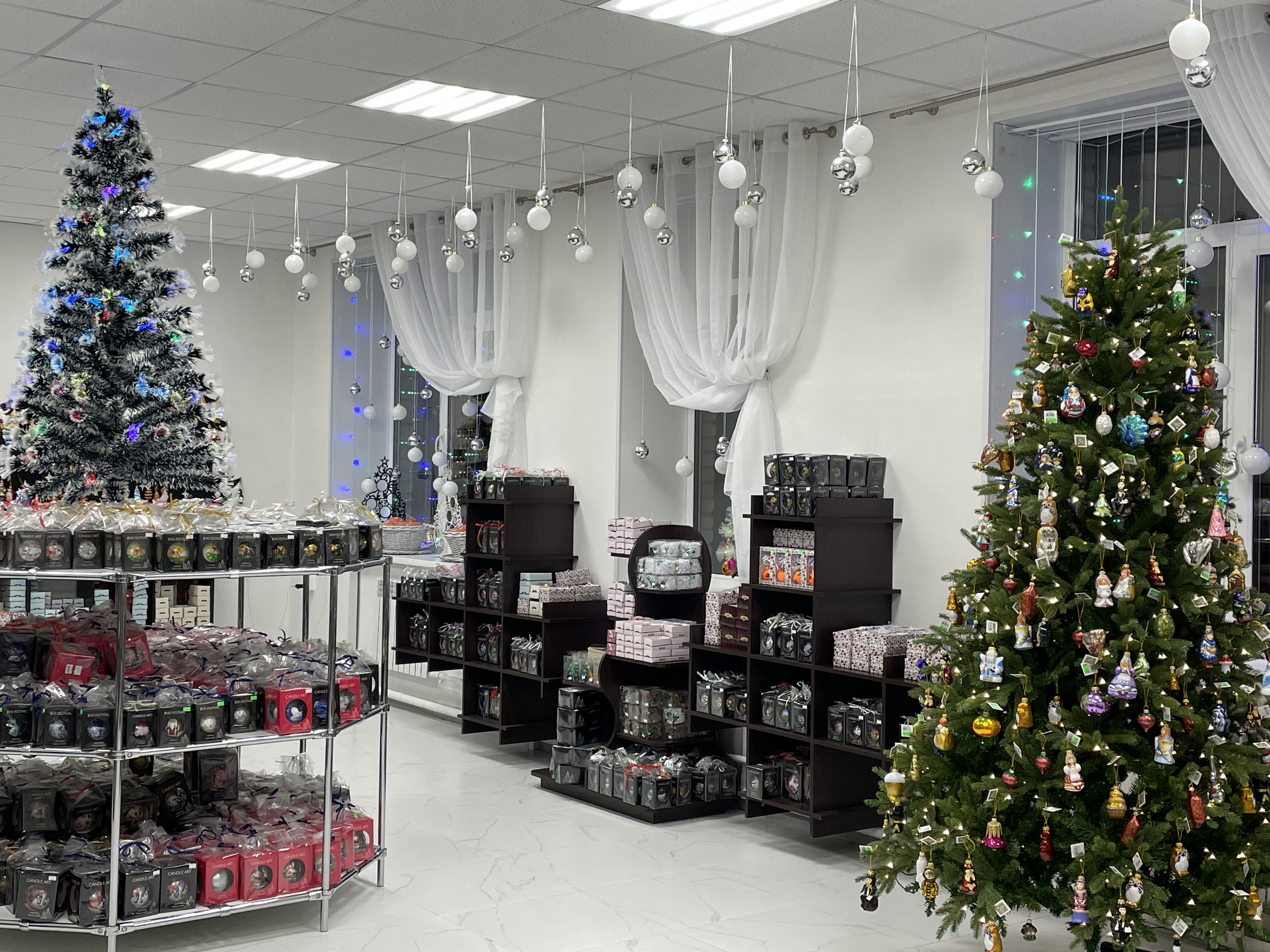 В экспозиции магазина особое внимание уделено ёлочным украшениям — игрушкам и праздничным шарам, созданным с традиционным мастерством и вниманием к деталям. Кроме того, здесь представлены гутные вазы — предметы, отражающие высокое стеклодувное искусство и сочетающие в себе красоту и функциональность. Все изделия выполнены с заботой о качестве и эстетике, что делает их прекрасным выбором для праздничного декора и личных коллекций.